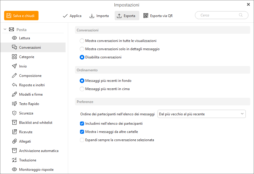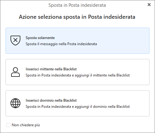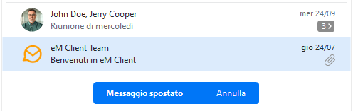 Hai spostato accidentalmente un messaggio in una cartella errata? A grande richiesta, qualsiasi azione Sposta può essere ora annullata tramite la notifica pop-up nella lista dei messaggi, o con la combinazione da tastiera Ctrl + Z.