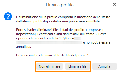 Avrai la possibilità di eliminare i file del profilo (database) o di conservare il database nel caso ti dovesse servire in futuro:
