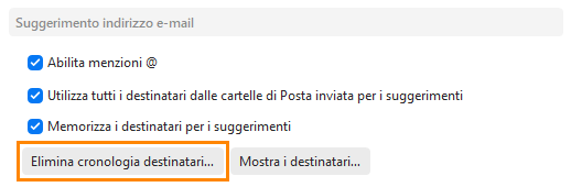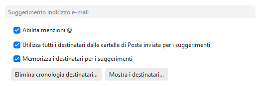 La funzione "Memorizza i destinatari per i suggerimenti" salva gli indirizzi di tutti i