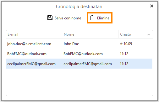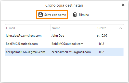 La cronologia dei destinatari tiene traccia di tutti gli indirizzi e-mail a cui invii messaggi.
